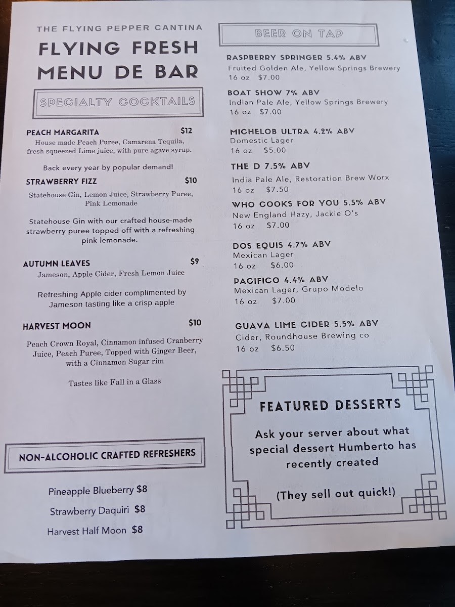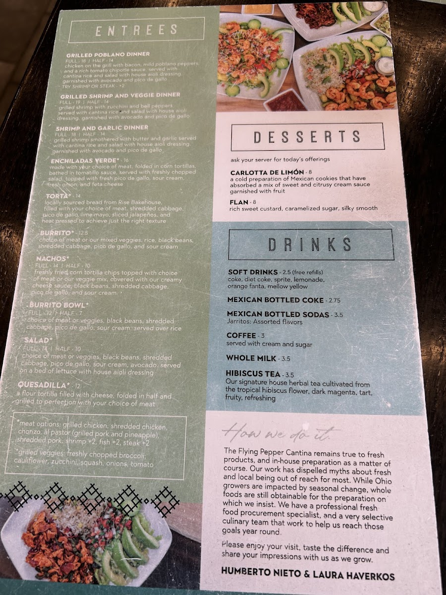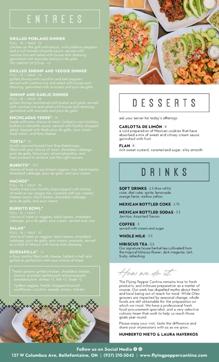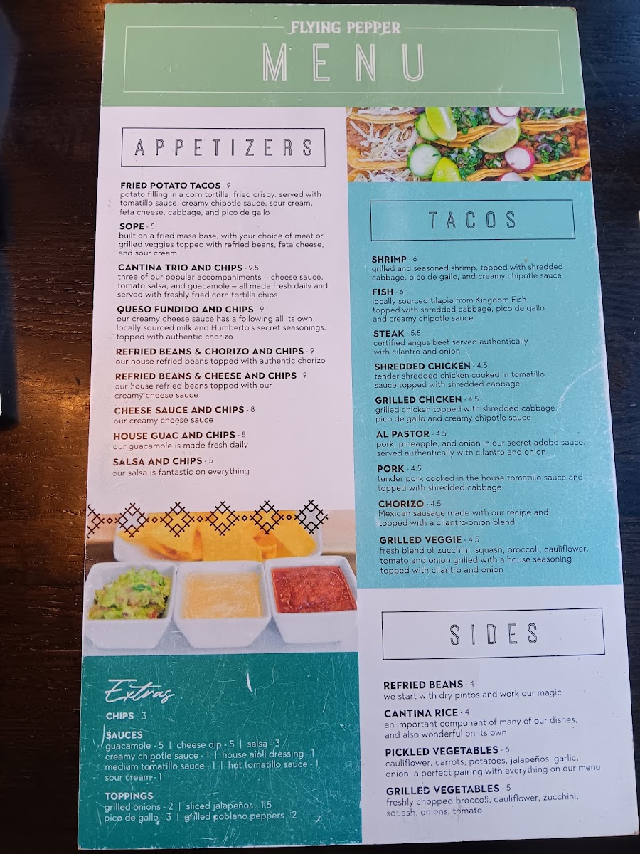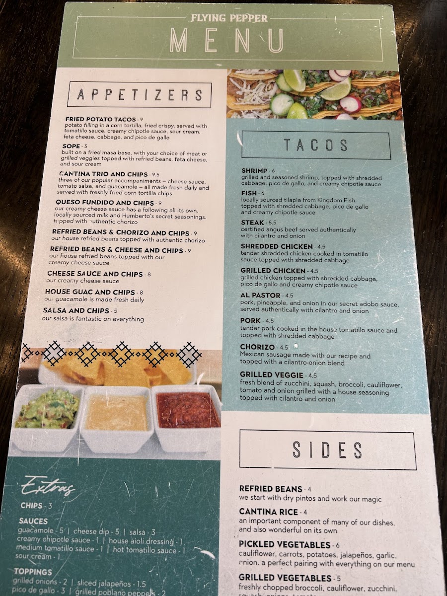 Overall, The Flying Pepper Cantina’s menu is diverse, flavorful, and caters to a wide variety of tastes and dietary preferences, ensuring that every visit is a satisfying one.