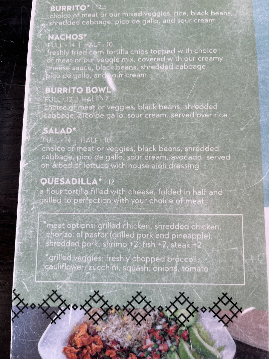 For those who enjoy the warm and comforting flavors of a burrito, the Shredded Chicken Burrito or Steak Burrito are excellent picks, as well as the customizable Burrito Bowl. The Nachos, available in several versions like Grilled Chicken Nachos and Shrimp Nachos, are a crowd-pleaser, ideal for sharing.
